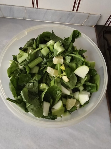 Jus 4 pommes + 3 carottes + 1 concombre + poignée épinards