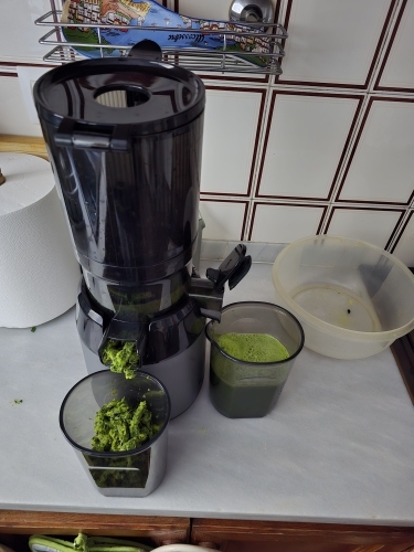 Un bon extracteur de jus qui gère bien le céleri fibreux, qui est facile à nettoyer et qui ne ressemble pas à un train de fret. J’apprécie vraiment ce nouvel appareil et les jus sains et délicieux que je peux préparer avec.